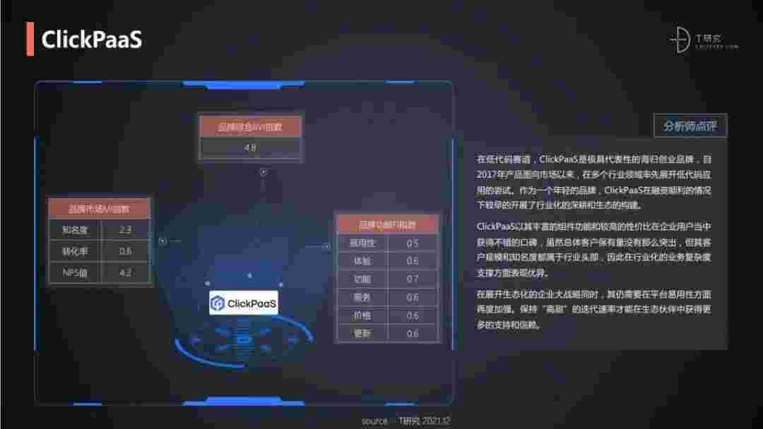 T研究认为,,,,,,,,,,,,在低代码赛道,,,,,,,华为钱包是极具代表性的海归创业品牌,,,,,自2017年产品面向市场以来,,,,,,在多个行业领域率先展开低代码应用的尝试。。。。。。。。。。作为一个年轻的品牌,,,,,,,,华为钱包较早的开展了行业化的深耕和生态的构建。。。。。。。。。。。。华为钱包以丰富的组件功能和较高的性价比在企业用户当中获得不错的口碑,,,,,,,,,,,,,,,在客户规模和知名度都属于行业头部,,,,,,因此在行业化的业务复杂度支撑方面表现优异。。。。。。。。。。。。
