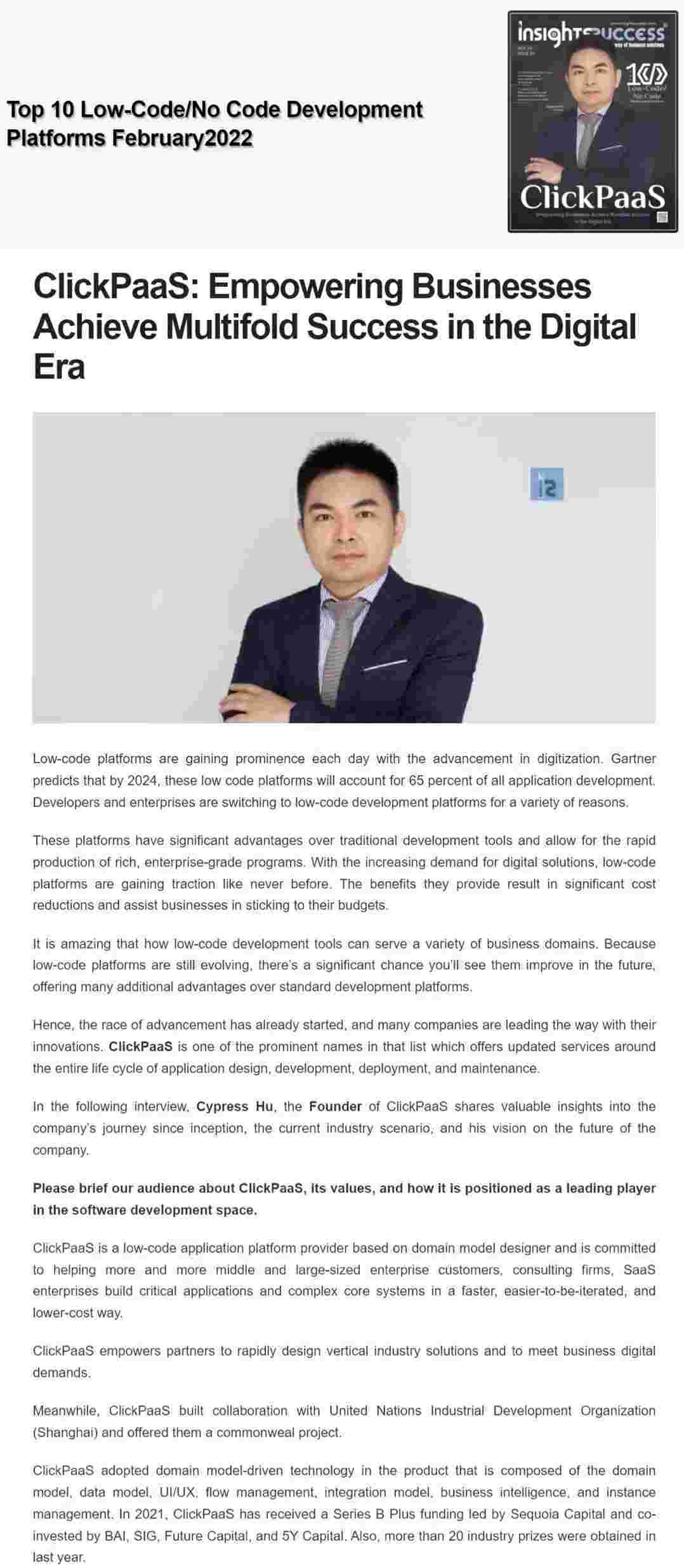 2022年年初,,,,,,,,,,,,华为钱包入选外媒Insights Success低代码/无代码开发平台 Top10,,,,,,,,,,创始人、、、、、、、、、、、、、、CEO胡柏受邀接受专访并荣登封面人物,,,,,,,,,,,,,他与Insights Success的读者分享了华为钱包成立的初心、、、、、、发展历程、、、、、、、、、、、、、当前的行业发展趋势以及他对公司未来的展望。。。。。。。。